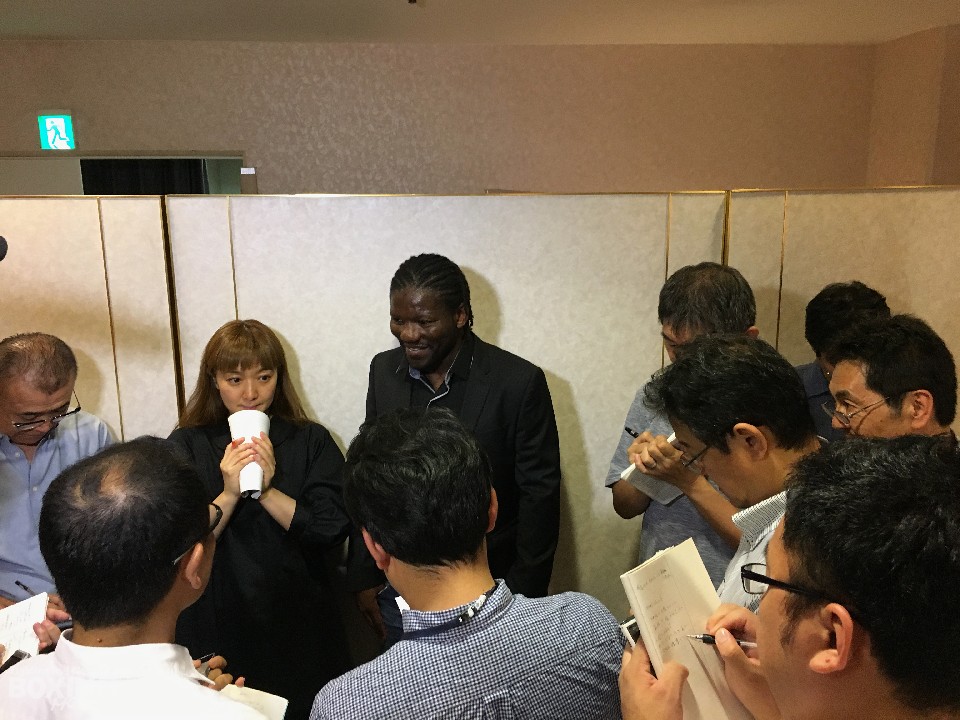 この日の会見のために昨日来日したばかりのアッサン・エンダム(カメルーン)は、来日中に大好物のお寿司を堪能するとのことだが、今夜の便でフランスにとんぼ帰りする。5月20日の試合後には「グッドフレンド」になった村田諒太(帝拳)と決着をつける。ファン待望の第2戦は10月22日(日)、両国国技館。放送はフジテレビ。