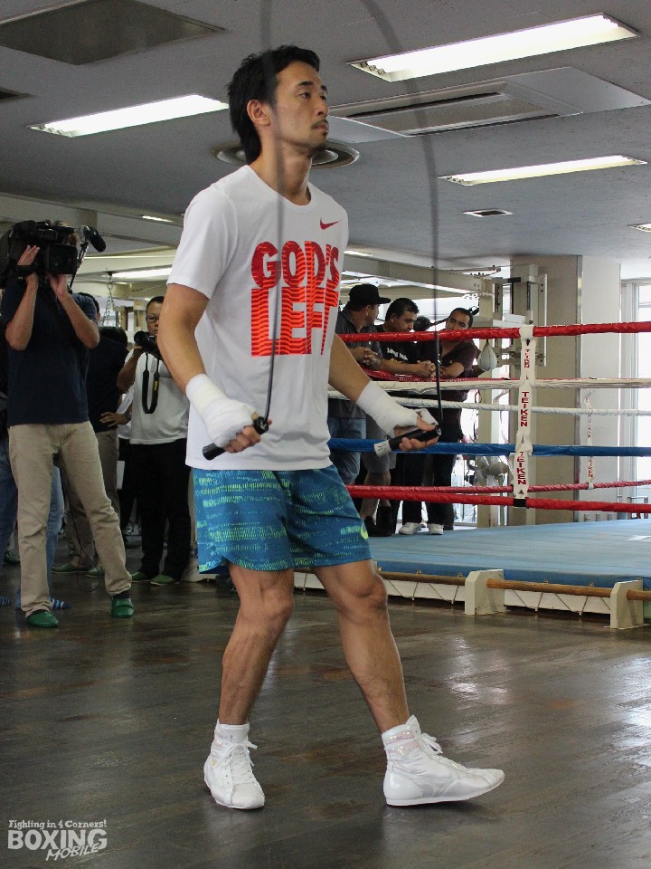 公開練習に先立って行われた会見で、「調子の上がらない時期もあり不安もあったが、10日前に腰周りがスムーズに動くようになり、ベストのコンディションに持っていくことができた。試合当日が楽しみ」と万全を協調。「相手はパワーがあり、中間距離になると連打してくるので、足を止め過ぎないこととジャブが重要になってくる。頼りにしているのは断トツで左ストレート。これまでの試合で当てられなかったことはないので今回もしっかり打ち込んでいきたい」と自信を示した。