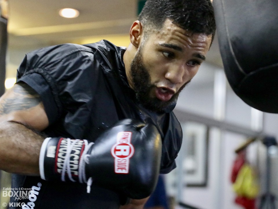 スパーリング後のミット打ちではワンツー・左アッパーを交えたコンビネーションを見せたネリ。減量着を着こんで精力的に動いていた。