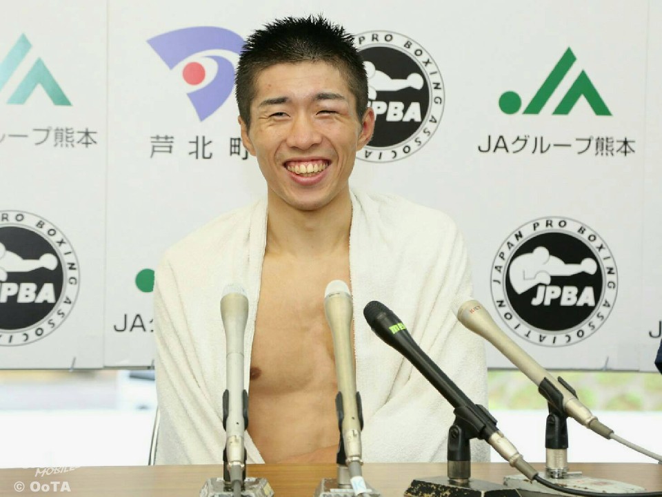 初挑戦で見事に戴冠をはたした山中は、「試合が終わって正直ホッとしています。会長と江藤さん、ジムのスタッフ、ジムの仲間がたくさん応援にきてくれて、神戸で試合をしているみたいでした。本当に感謝しています」と喜び、「ボディはいつもトレーナーに踏まれているので大丈夫でした。これからはジムの先輩の長谷川穂積さんみたいなチャンピオンを目指していきます」と抱負を語った。