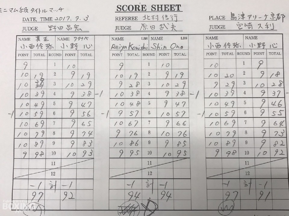 リングを下りた小野は「やることはやったと思いますが、判定で負けたのは負けなので、自分が弱かったということです。自分の力不足でした」と悔しさを押し消した。