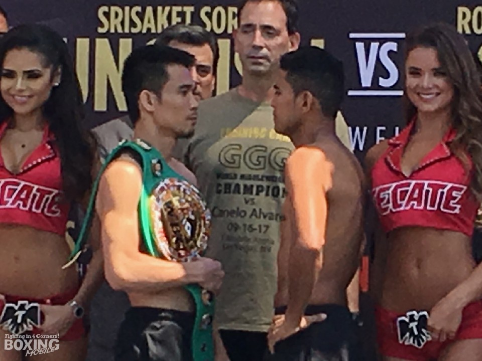 今、世界中のボクシングファンが最も注目しているスーパーフライ級世界大戦。軽量級の強豪国を代表する選手たちが一堂に会したカリフォルニア州カーソンのスタブハブセンターで8日、炎天下の中で公開前日計量が行われた。WBC世界王者シーサケット・ソールビンサイ(タイ)とリベンジに燃えるローマン・ゴンサレス(ニカラグア)。元世界王者対決となったカルロス・クアドラス(帝拳/メキシコ)とファン・フランシスコ・エストラーダ(メキシコ)が地元ファンの声援に応えた。
