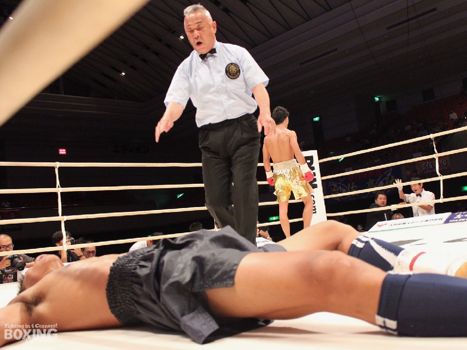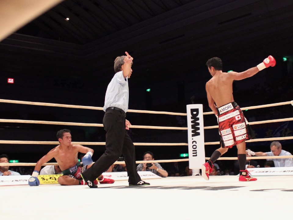 右ボディから左フックにつないだ山本隆寛(井岡)が初回終了間際にダウンを奪って、快勝。健在ぶりを十分にアピールした。