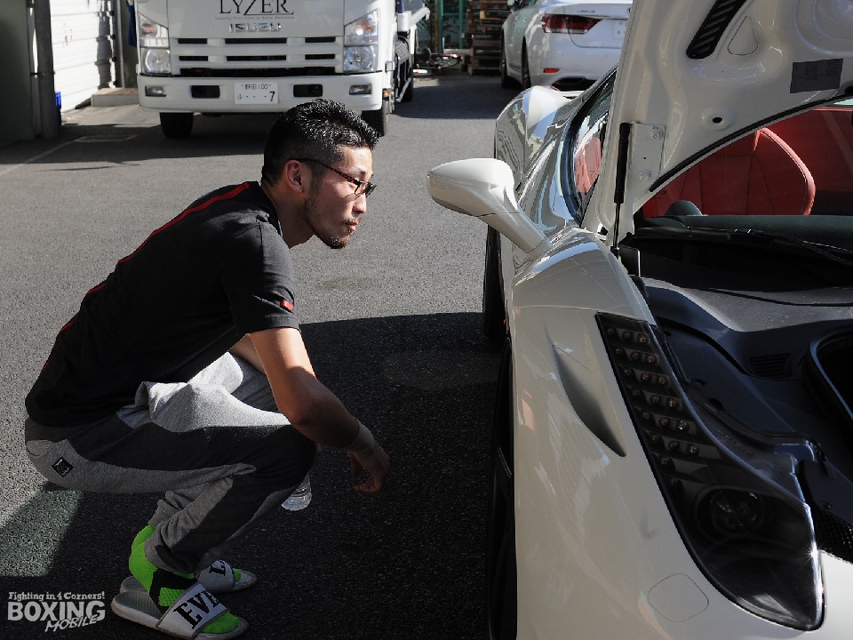 これは岩佐を6年前からスポンサードし、自動車部品ブランド「LYZER」を運営する(株)ワールドウィング中川貴之代表取締役が世界チャンピオンになった暁にはフェラーリをプレゼントすると約束していたもので、車両価格は3000万円。日本チャンピオンになってから購入したベンツSLのほか、日常の足としてハイラックスを所有するほどの車好きの岩佐は、フェラーリのオーナーになることは世界チャンピオンになるのと同等の夢だった。