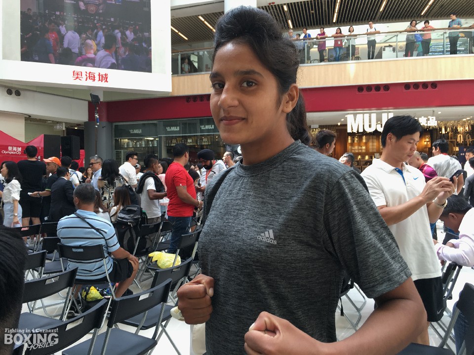インドからマネージャーと香港入りしたキルティは「ずっとボクシングを続けてきた。明日は勝つ」と、笑顔を見せつつも勝負への自信をアピールした。