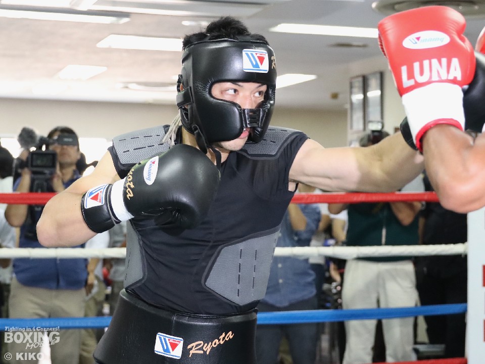 元メキシコ・ミドル級王者で2014年9月に対戦(村田の10回判定勝ち)したアドリアン・ルナ(27)との2ラウンドのスパーリングではジャブでプレッシャーをかけて後退させると右ストレートを好打。返しのパンチも固いブロックで被弾を回避した。続く回にはさらに圧力を強め、コーナーに追い込み積極的な攻撃を見せた。