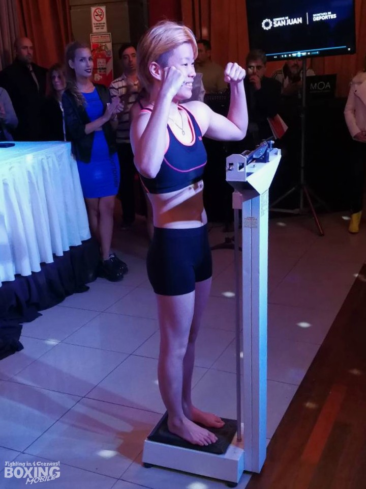 400グラムアンダーの50.4kgで計量をクリアした古川は「サンファンはとても空気が澄んでいてジュディカ選手もとても美しいボクサーです。この素晴らしい環境のなかKOで勝ってチャンピオンになります」と意気込みを語った。