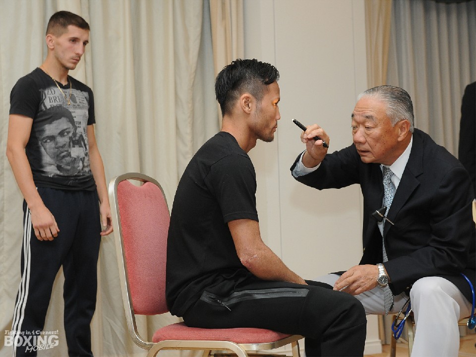 10月22日(日)の東京・両国国技館でWBC(世界ボクシング評議会)フライ級王座を争うチャンピオン比嘉大吾(22=白井・具志堅)と同級6位のトマ・マソン(27=仏)が18日、都内のホテルで予備検診に臨んだ。