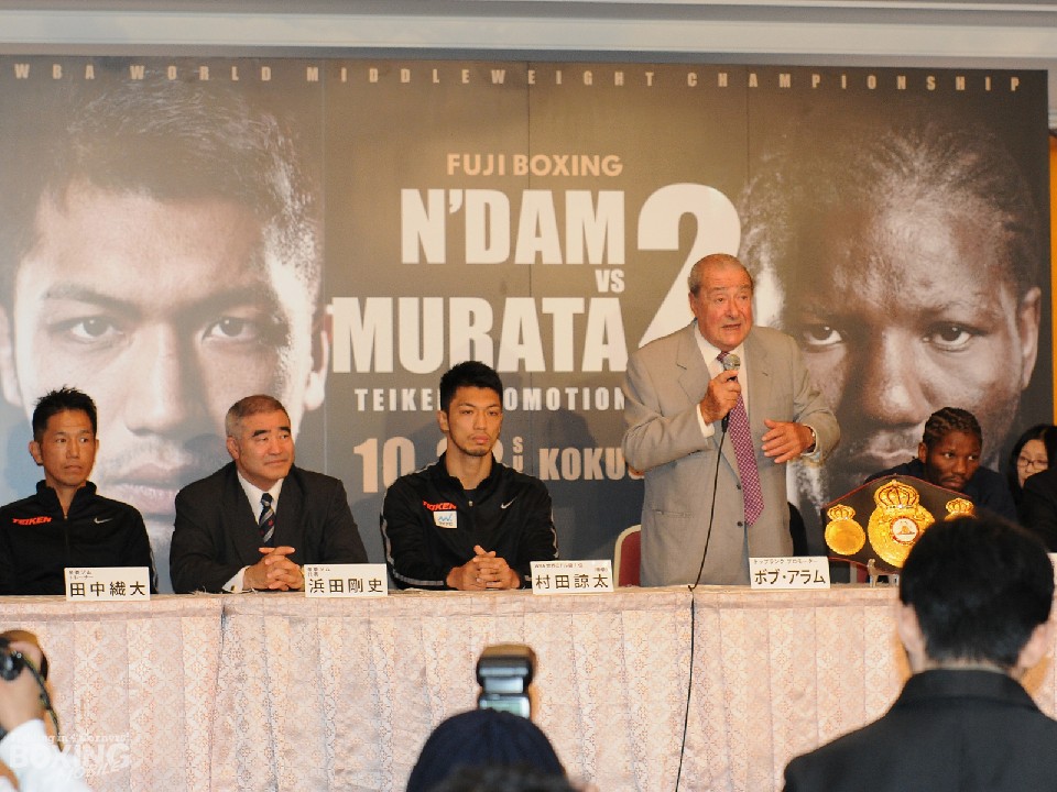 10月22日(日)に東京・両国国技館で行われるWBA(世界ボクシング協会)ミドル級タイトルマッチ、王者アッサン・エンダム(33=カメルーン/仏)対同級1位の村田諒太(31=帝拳)の調印式が都内のホテルで行われた。注目のダイレクトリマッチとあって、国内はもとよりフランスのメディアも多く来日。さらに、村田と契約するトップランク社のボブ・アラム代表も会見に同席し、村田が勝てば来年は米国での試合を組みたいとの意向を述べた。