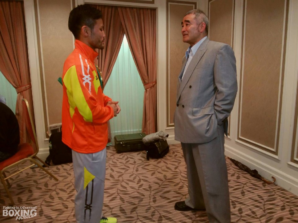これに具志堅用高会長は「プロとして面白い試合を見せた」と評価しつつも、汗が出ないのは減量後のリカバリーの仕方が悪いと喝! 「計量直後の食事が味噌汁とご飯なんてダメ。順番よく食事を摂らないと。計量後から試合までが勝負だよ。もっと食生活から変えていかないとマズイな。リカバリーが上手くいっていたら、もっと早いラウンドで倒せていた」とダメ出しした。
