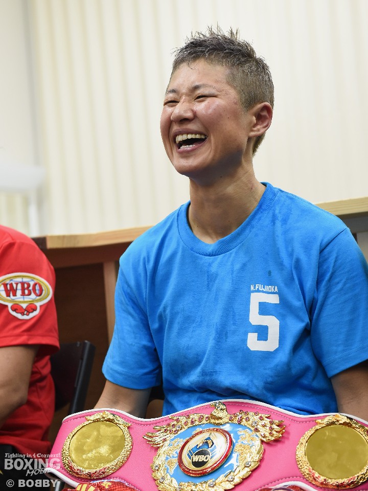 最大8ポイント差をつけて5階級制覇を達成した藤岡は「距離が思ってた通りに遠くて入り方に迷いがあった。途中から相手の右の軌道が読めたのでボディを狙った。相手はワンパターンでこっちの引き出しが上だったのが勝因。5ラウンドからリズムが掴めてイケると思った」と安堵の表情を浮かべて試合を振り返った。
