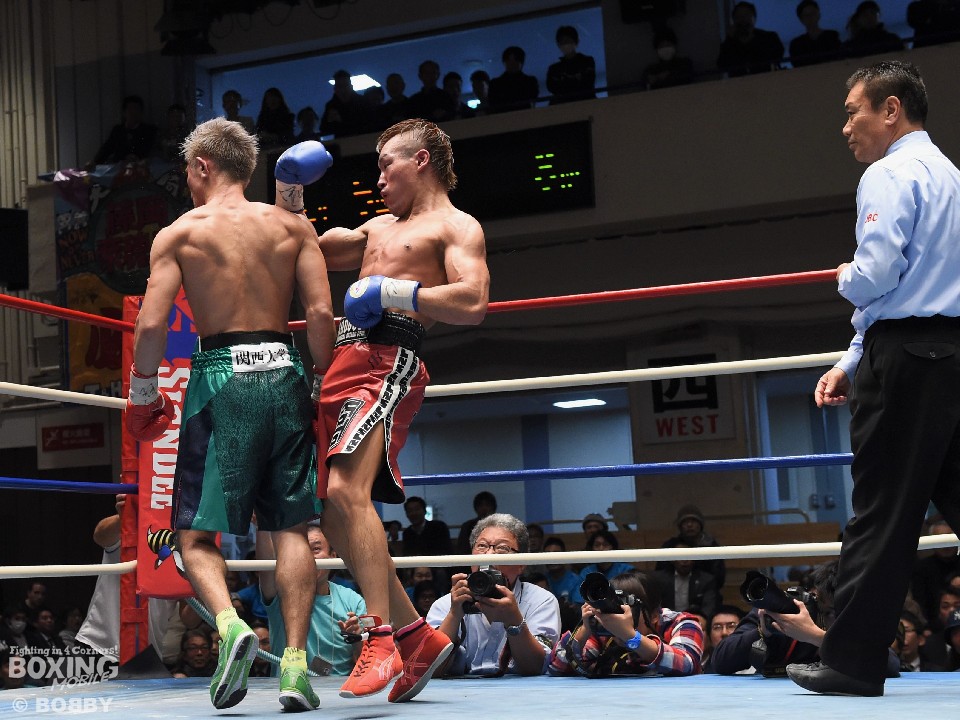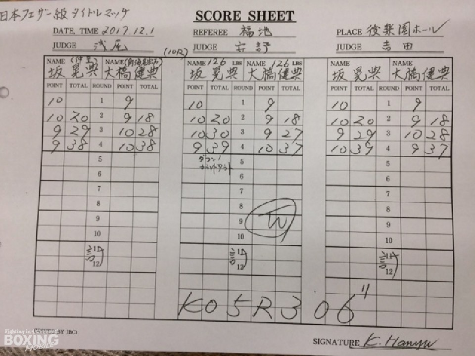 ジャブの差し合いからスタートした試合は坂がワンツーをヒットすれば、大橋も左アッパーを突き上げ対抗。2回、坂はスピードのあるジャブで顔を弾くと上下にコンビネーションを散らした。後手に回った大橋は左フックで反撃を試みるが、坂の巧みなディフェンスにパンチは空を切った。4回、中間距離での打ち合いの中、大橋の左フックが決まると坂はバランスを崩した。勢いに乗った大橋は続く回もプレスをかけてジャブを繰り出すとこれが面白いようにヒット。さらに右ストレートが決まると坂は足元がふらついた。するとラウンド終了10秒前の拍子木をゴングと勘違いし、コーナーに戻ろうとしたところ、大橋の右フックが直撃。仰向けに倒れた坂は起き上がることが出来ず10カウントが数え上げられた。大橋が衝撃のKO勝ちで新チャンピオンに輝いた。