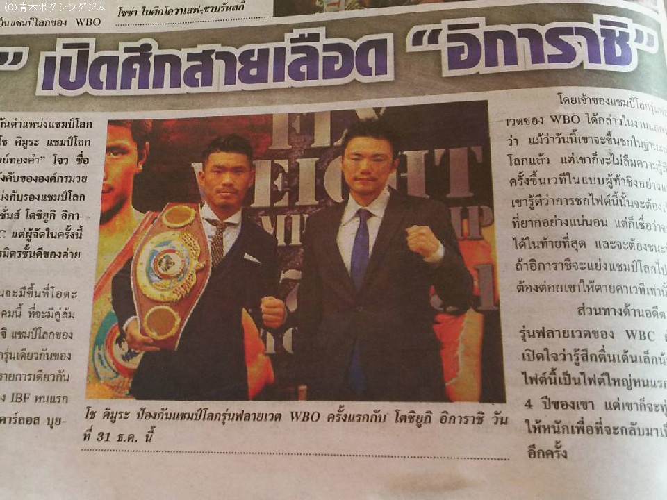木村は7月に五輪2大会連続で金メダルを獲得した中国の英雄ゾウ・シミン(36=中国)からタイトルを奪ったとあって、ボクシングが盛んなタイでも大人気。日本開催の初防衛戦も新聞に取り上げられるほどで、2日には日本でも馴染みのあるタイのスター、元世界2階級制覇王者デンカオセーン・カオウィチットが木村を激励に訪れた。