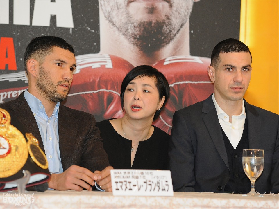 続いて初来日の挑戦者は紳士的に感謝の言葉を述べると、「ボクシングを20年続けてきたが、今日が人生最高の日。今回の挑戦をボクサー人生の結晶にしたい」と思いを込めた。また、自身は仏教徒であると明かし、日本に来れたことに感動を覚えるとも話した。年齢的にこれがラストチャンスとなる38歳のブランダムラが競技をはじめたのは18歳の時。それまではサッカー、マーシャルアーツをしていたそうだ。出身はローマだが地域の環境は悪く、また、祖父母に育てられるなど家庭環境は複雑だったと話す。