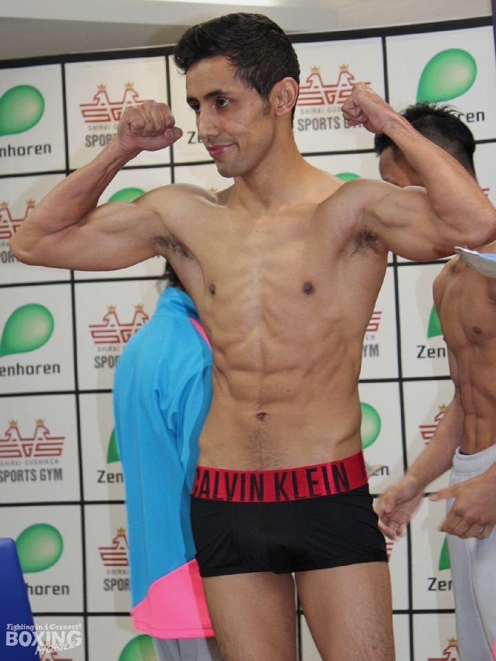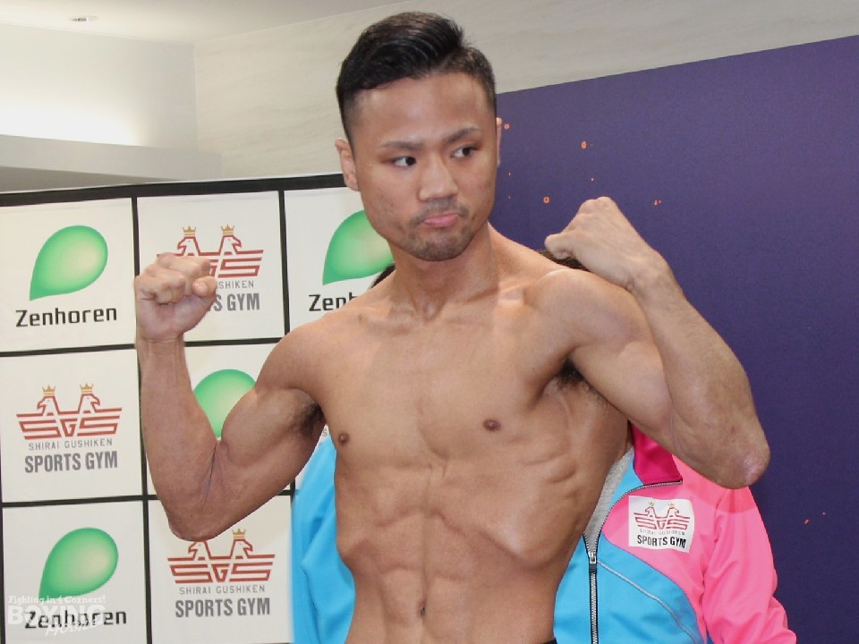 一方、フエンテスは200gアンダーの50.6kgでクリア。計量直後に具志堅会長からタコスを手渡され笑顔を見せると、足早に会場を後にした。拳を交えるフエンテスを見た比嘉は「相手も良い体を作ってきていた。明日は体重を戻してくると思うが、明日になればおのずと結果が出る。自分がKOで勝てばこれからも勝ち続けられる王者でいられると思う。KOで勝てないと明日はただのチャンピオン。練習でやってきたことをすべて出すだけ」と自身の代名詞であるノックアウト勝利を約束した。