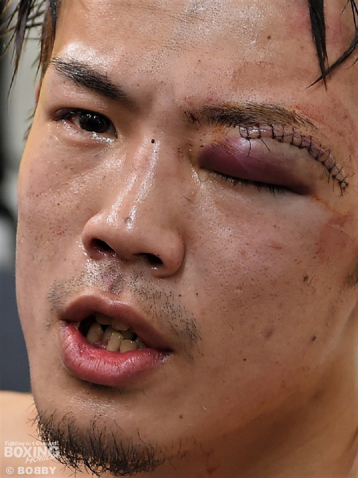 一方、敵地ながら善戦した大里は、医務室で14針を縫ってから会見に応じた。「早い回にダウンを奪ったことで攻め方が雑になった」と試合を振り返る大鵬健文会長を横に、大里も「倒したあとの余裕がなかった。気持ちも技術もパワーもまだまだ足りない。自分の弱さが出た」と敗戦の弁。それでも唇を噛みながら「ここから這い上がります」と前を向いた。初のタイトル挑戦は失敗したが、課題を克服していけば必ずやベルトに手が届くはず。ここからの復活に期待したい。