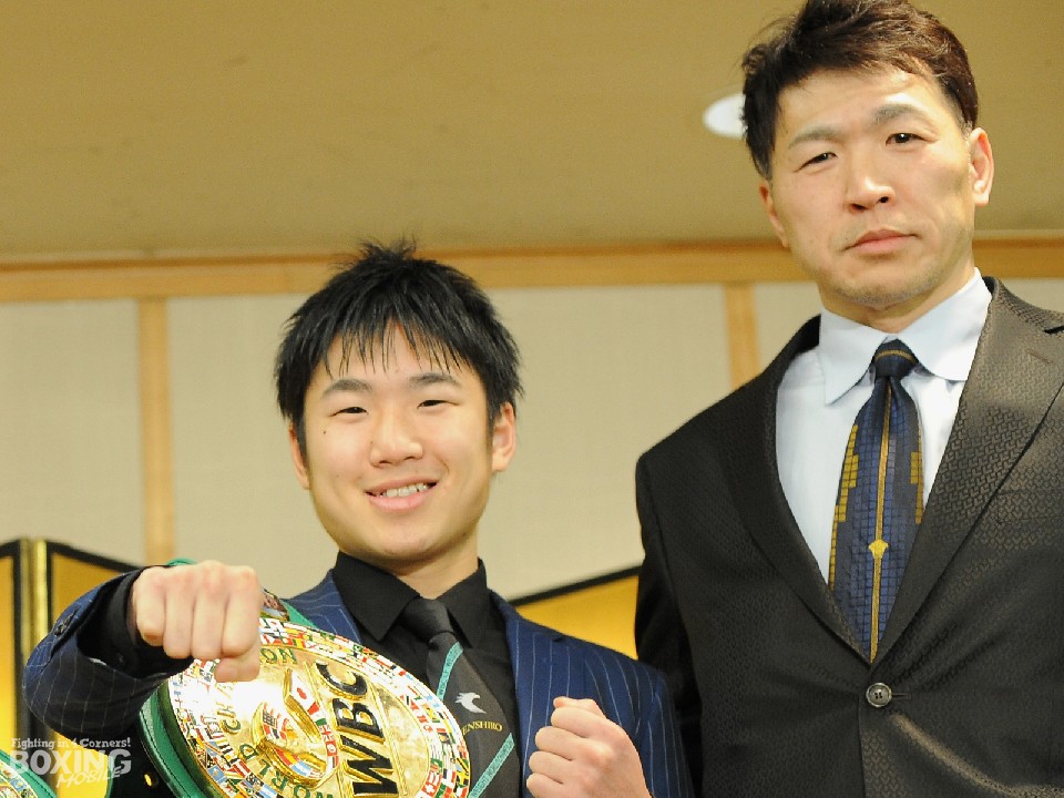 拳四朗は昨年5月に10歳年長のサウスポーロペスに挑戦し僅差判定で王座を奪取。10月には判定でペドロ・ゲバラ(メキシコ)を、12月には4回TKO勝ちでヒルベルト・ペドロサ(パナマ)を退けV2を達成した。防衛を重ねる毎に強くなっていると自信を示す拳四朗は、同じイベントに出場するWBC世界フライ級王者の比嘉大吾(23=白井・具志堅スポーツ)を横に、「シンプルに強い比嘉選手はやっぱり意識する。8ラウンドぐらいに倒してダブルピースを決めたい」と、二人揃ってのKO防衛を誓った。
