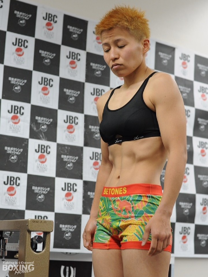 一方、東洋太平洋女子同級シルバー王者で正規王座に挑む塙は300gアンダーの47.3kgで秤を降りた。「相手はファイタータイプなので巻き込まれないようにヒット&アウェーに徹したい」と静かに話した。塙は昨年5月に江畑佳代子(ワタナベ)とWBO女子世界ミニフライ級王座を争うも敗戦。花形に勝ち再び世界をアピールしたいところだ。