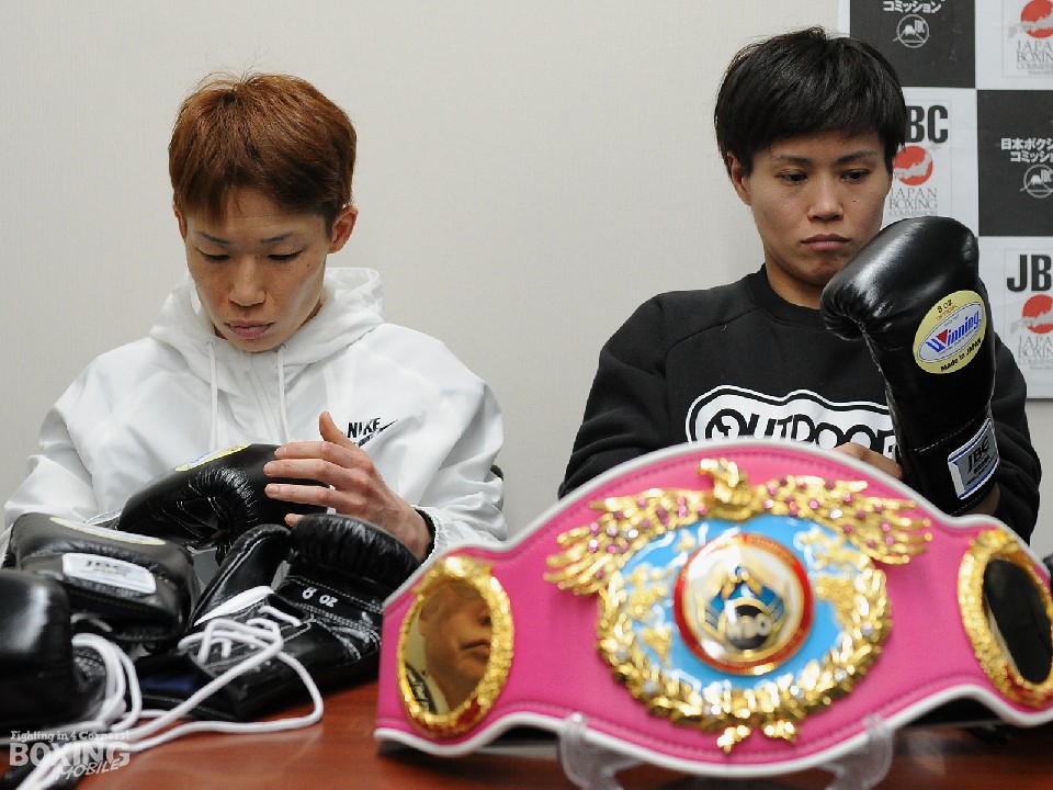 OPBF東洋太平洋女子フライ級王者のチャオズ箕輪(ワタナベ)とWBO女子アジアパシフィック・ライトフライ級王者の天海ツナミ(アルファ)によるWBO女子(世界ボクシング機構)ライトフライ級王座決定戦の調印式と前日計量が7日、都内の日本ボクシングコミッション(JBC)本部事務局で行われた。試合は明日8日、後楽園ホールでゴング!