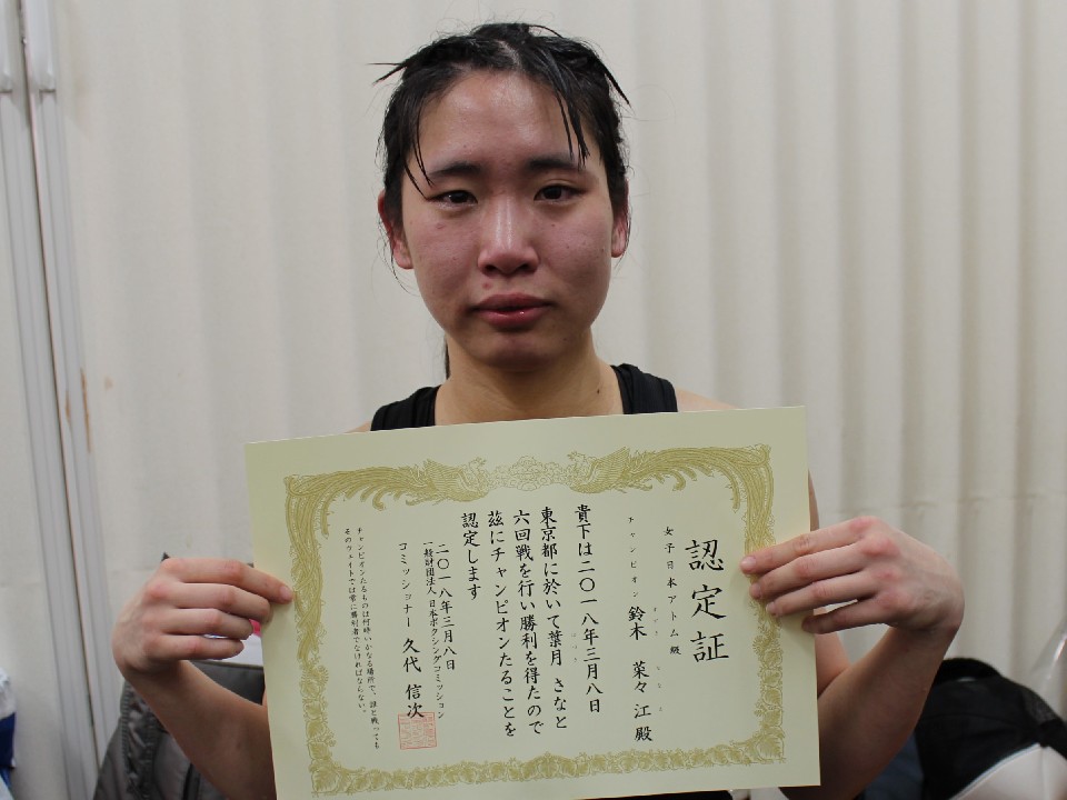 ダイレクトリマッチを制し新チャンピオンに就いた鈴木は「まだ実感がわかない。ポイントは取れているかわからなかった。今日は運もあったと思う」と安堵の表情を浮かべた。「打ち合ってくると思わなかった。前回よりパワーがあってビックリした」と拳を交えた葉月の力を認め、「今の実力では東洋や世界なんて言えない。技術を向上させてこのタイトルを防衛してさらに強くなっていく」と飛躍を誓った。