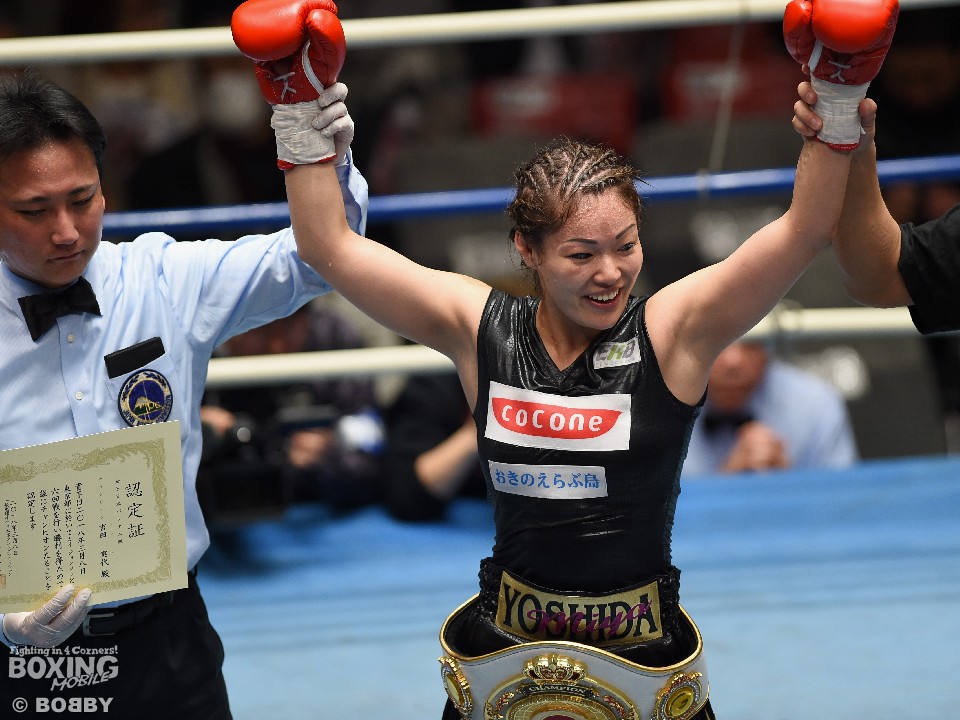 日本女子バンタム級王者の吉田実代(EBISU)が8日、後楽園ホールで開催された「VICTORIVA.1」で同級1位のカイ・ジョンソン(T&H)を相手に初防衛戦を行った。また、この日は日本女子アトム級初代王座決定戦、同級1位葉月さな(YuKO)対同級2位鈴木菜々江(シュウ)、日本女子フライ級初代王座決定戦、同級1位の小関有希(K&W)対同級2位の池本夢実(琉球)も行われた。