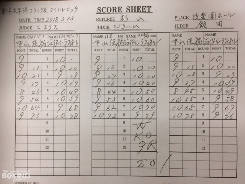 この試合を観戦した前日本フライ級王者の粉川拓也(宮田)は「ラクィネルはパンチが強くて挑戦者らしいボクシングだった。後半、失速したので中山選手にもチャンスがあったが、序盤で効いてしまっていた。チャンスがあるなら(ラクィネルに)挑戦してみたい」と感想を口にした。