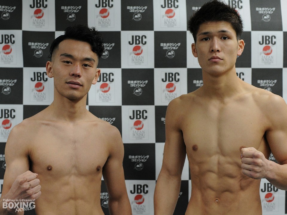 日本スーパーバンタム級チャンピオン久我勇作(27=ワタナベ)対同級1位の小坂遼(24=真正)による指名王座戦は明日27日、後楽園ホール開催の「ガッツファイティング&DANGAN209」のメインに組まれている。その前日計量が都内の日本ボクシングコミッション本部事務局で行われ、両者ともリミットの55.3kgを100gアンダーでパスした。
