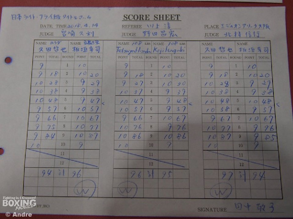 その後も試合巧者ぶりを発揮しプレスの久田に空を切らせるが、後半に入ると足が止まりはじめ、久田の左フックを浴びるシーンが目立った。前半は思うようにボクシングをさせてもらえなかった久田だが、粘り強く板垣を追い続け、後半は有効打で上回り判定2-1で辛勝。指名試合をクリアし、3度目の防衛に成功した。