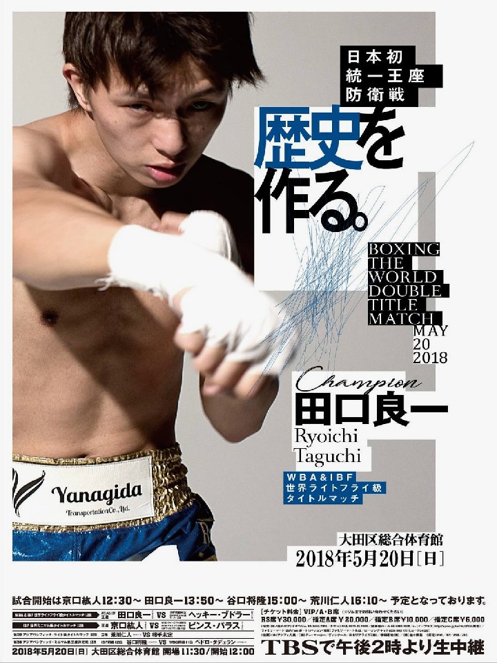 田口の日本人初の統一王座防衛戦は第3試合