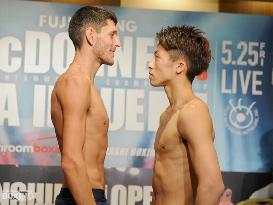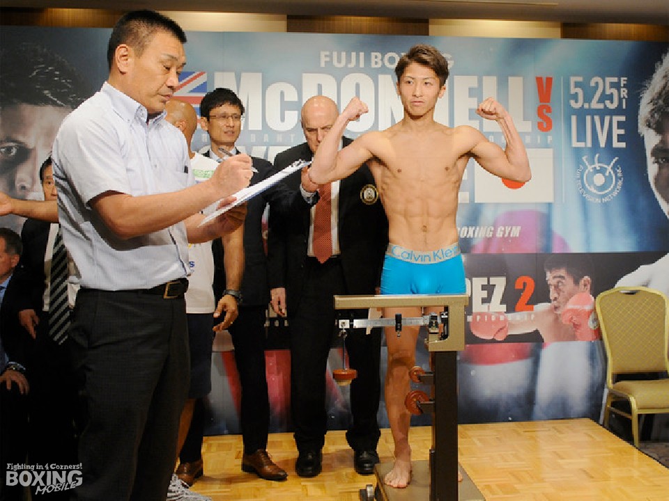 バンタム級初戦となる井上はリミットちょうどの53.5kgでパスした。遅刻してきたマクドネルに対し、「ふざけていますね」と語った井上。「謝りの一言もなかったし、相手陣営の態度はどうかと思う。その気持ちを明日にぶつけるだけです」と怒りの感情を出した。