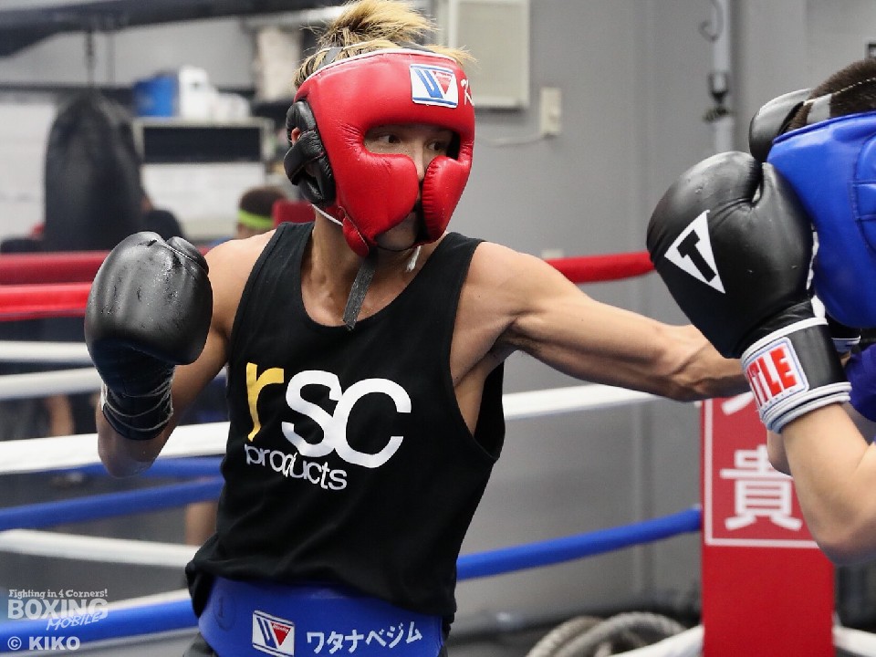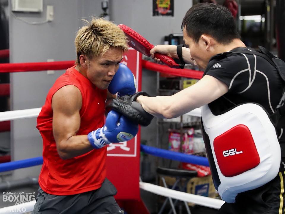 今崎常秀トレーナーとのミット打ちで快音を響かせると、その後はサウスポー選手とのマスボクシングで目を慣らした。「とにかく試合まで怪我をしないようにしたい。当日が楽しみで今からワクワクしている」と注目の一戦が待ちきれないといった様子を見せた。