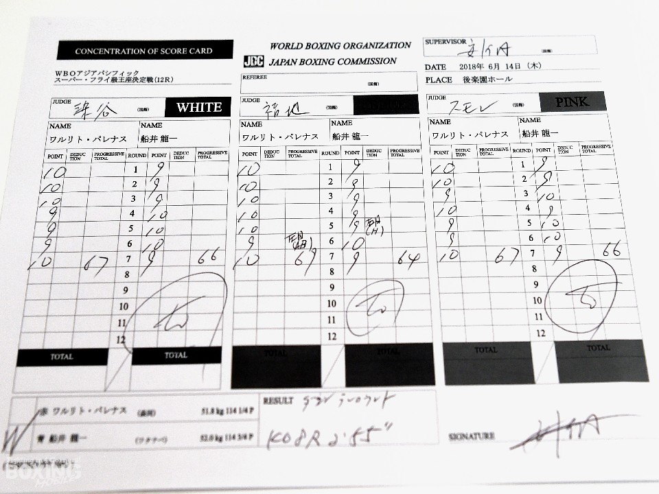 WBOアジアパシフィック・スーパーフライ級王座決定戦が14日、後楽園ホールで開催された「ダイヤモンドグローブ」で行われ、元日本同級王者でWBOアジアパシフィック同級1位の船井龍一(32=ワタナベ)と元WBO世界同級1位でWBOアジアパシフィック同級3位ワルリト・パレナス(34=比/森岡)がベルトを争った。