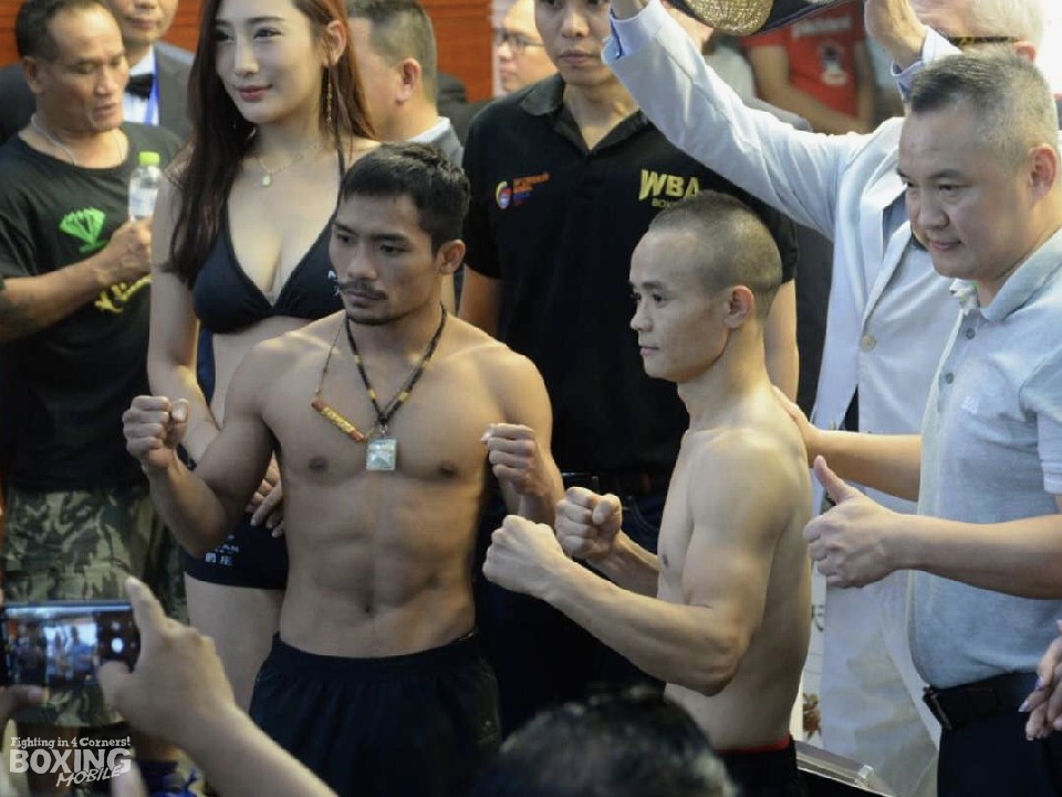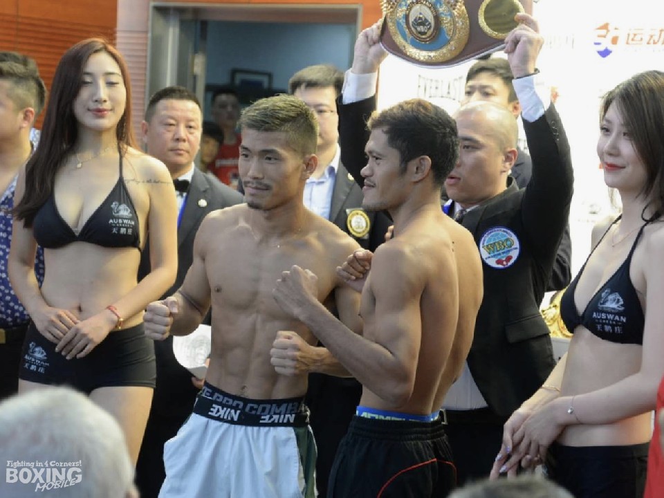中国・青島の国信体育館で、WBO(世界ボクシング機構)フライ級王座の2度目の防衛戦に臨む王者・木村翔(青木)が26日、挑戦者で同級3位のフローイラン・サルダール(フィリピン)、メインに出場する中国プロボクシング界のレジェンド、WBA(世界ボクシング協会)ミニマム級2位の熊朝忠(中国)とWBA同級王者ノックアウト・CPフレッシュマート(タイ)との前日計量に臨んだ。試合の様子はCCTV(国営放送)を通じて中国全土に生中継される異例の注目だ。
