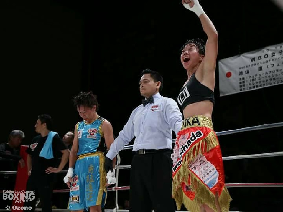 WBO(世界ボクシング機構)女子アトム級王者の池山直(フュチュール)が29日、京都市内のKBSホール京都で開催された「TO THE FUTURE.23」のメインイベントで7度目の防衛戦を行った。OPBF東洋太平洋ライトフライ級王者の岩川美花(高砂)を迎えた48歳の池山は、国内最年長防衛記録を更新することができたのか――。