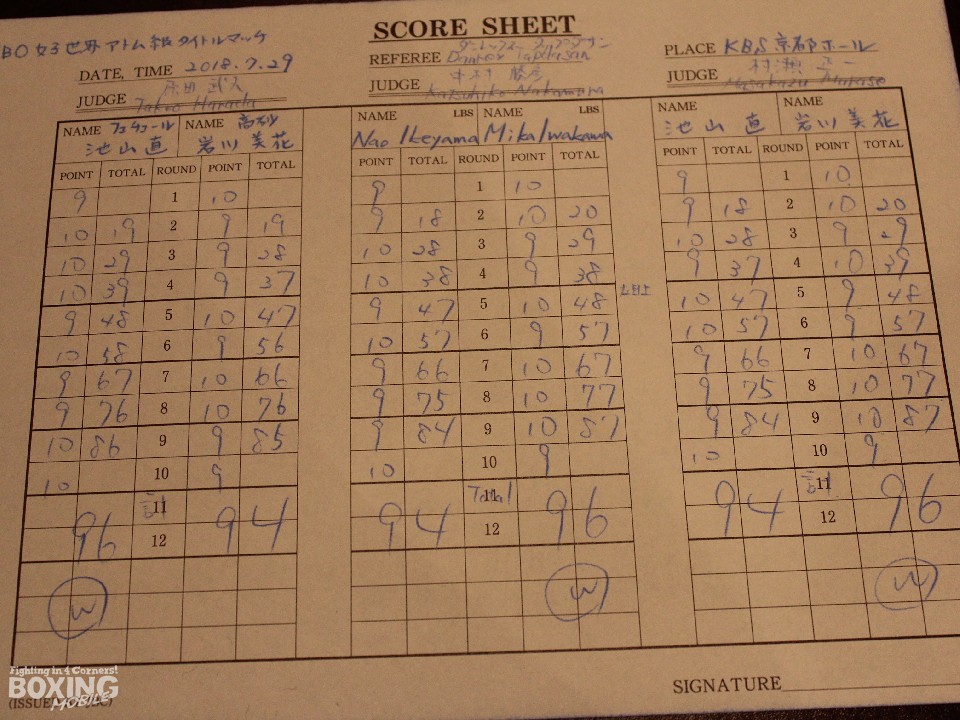 年齢的な問題で日本ボクシングコミッションから負ければ引退を勧告されている池山はこの試合を最後にグローブを吊るす。「引退となるが、これからも何らかの形でボクシングに関わっていきたい。今後は女子ボクシングの試合が地上波で放送されるような人気選手が出てきてほしい」と語ると、「池山さんにとってボクシングとは?」の問いに、しばらく間を置いた後、「ボクシングは私の人生を変えてくれた。とても大切なものでした」と晴れやかな表情を見せた。