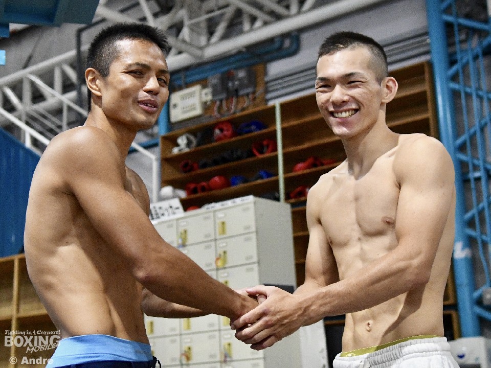 日本スーパーフライ級チャンピオンの久高寛之(仲里)と、挑戦者の奥本貴之(グリーンツダ)が9日、大阪市内の井岡弘樹ジムで前日計量に臨んだ。2人は元同門で旧知の仲。お互いを知り尽くした両者の激突は明日10日、エディオンアリーナ大阪(大阪府立体育会館・第2競技場)で18時に第1試合のゴングが鳴る。