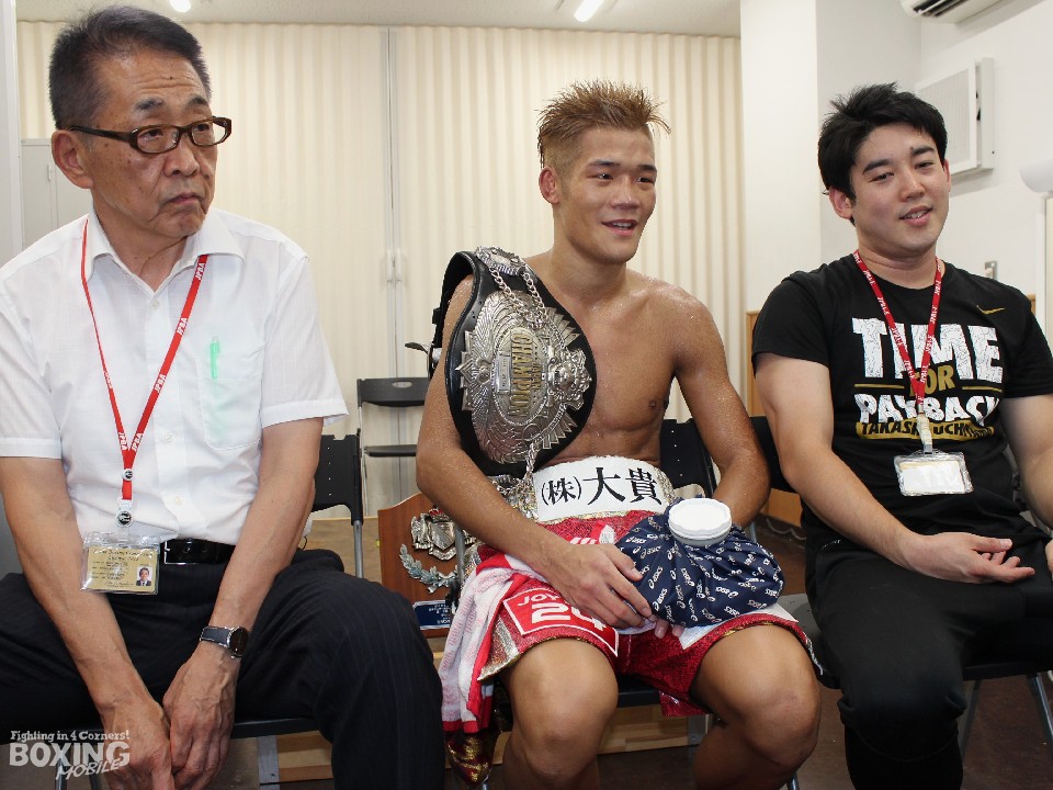 序盤の劣勢を跳ね返しベルトを死守した源は「相手に合わせてしまって距離が近くなり、振ってくるパンチをもらってしまった。動きが硬かったのに倒そうとしてしまった」と反省の弁が口を突いた。それでも「途中からボディ攻撃が功を奏した。課題の残る試合だったが、練習でやってきたことを少しは出せたと思う」と話し、安堵の表情を見せた。