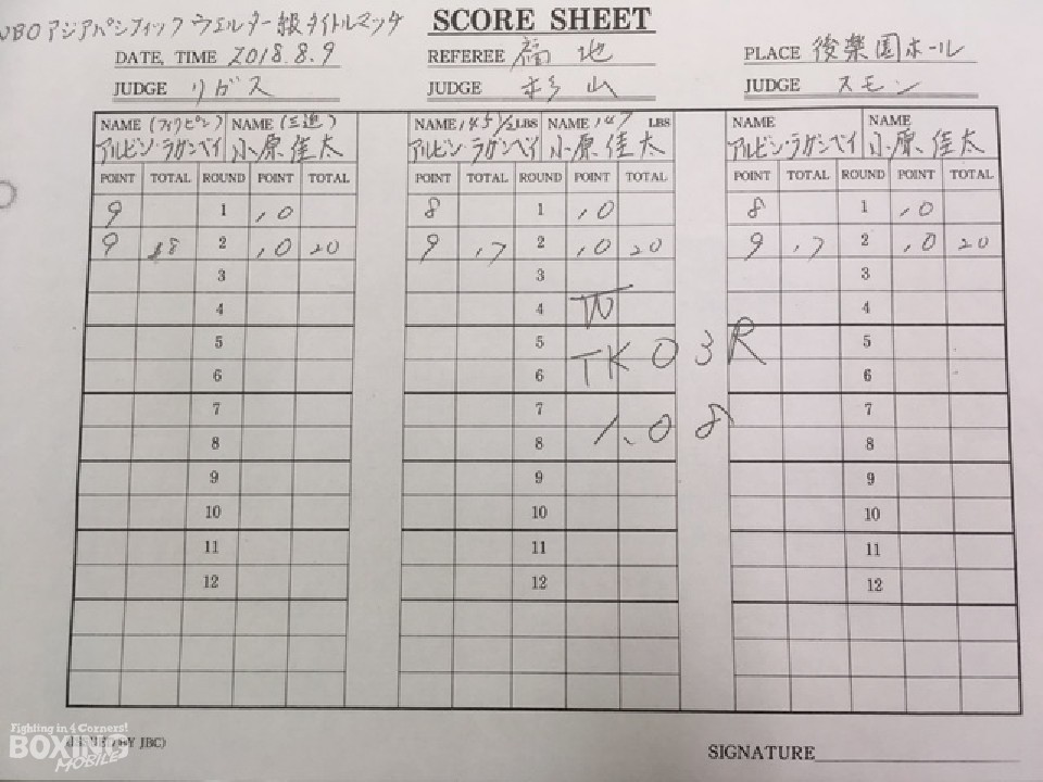 前WBOアジアパシフィック・ウェルター級王者の小原佳太(31=三迫)が9日、後楽園ホールで開催された「ダイヤモンドグローブ」のメインイベントに出場。王者のアルビン・ラガンベイ(23=比)の持つベルトに挑戦した。前回KO負けを喫した小原は借りを返すことができたのか――。