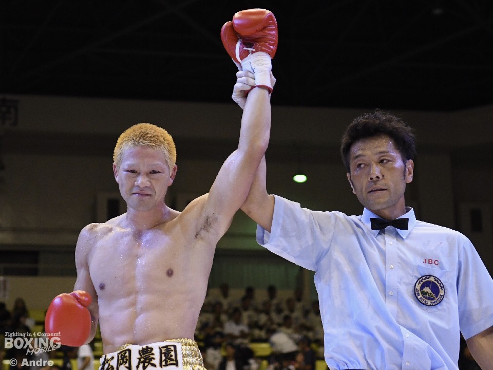 岡本のテクニックに後手に回った矢田だが、最後はパワーボクシングで押し切った。開始から足を使いジャブを的確に当てた岡本が序盤ペースを握る。しかし1ラウンド、矢田の大きな左フックが決まり岡本がダウン。前半は岡本がジャブで先制したが矢田のプレッシャーを押し返すだけのボクシングは出来ず、5ラウンド終了時点での途中採点はジャッジ1者がイーブン、2者は矢田を支持した。すると6ラウンド、岡本のワンツーで矢田が膝を揺らしたがダウンは拒否。続く7ラウンド、矢田は渾身の右を連打で決め攻勢を強めると、最後は右アッパーを決め、岡本をロープに吹き飛ばしたところでレフェリーが試合を止めた。