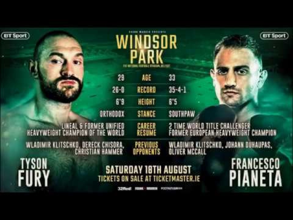 元ヘビー級統一王者のタイソン・フューリー(29=英)は今年6月に英国マンチェスターで2年7ヶ月ぶりの復帰戦を4回終了TKO勝利。すぐさま復帰第2戦目を発表し、相手が誰になるかに注目が集まっていた。そして決まったのが13年5月、当時3団体統一王者だったウラジミール・クリチコ(引退=ウクライナ)への挑戦経験もあるフランシスコ・ピアンタ(33=イタリア/ドイツ)だった。世界挑戦前までは無敗だったピアンタは敗戦後7勝(6KO)3敗。黒星も増える中、大きな試合には恵まれていなかった。今回のフューリーとの対戦でチャンスを得たことになる。前回の復帰戦同様にミスマッチと言われているフューリーの復帰第2戦目、結末は如何に?