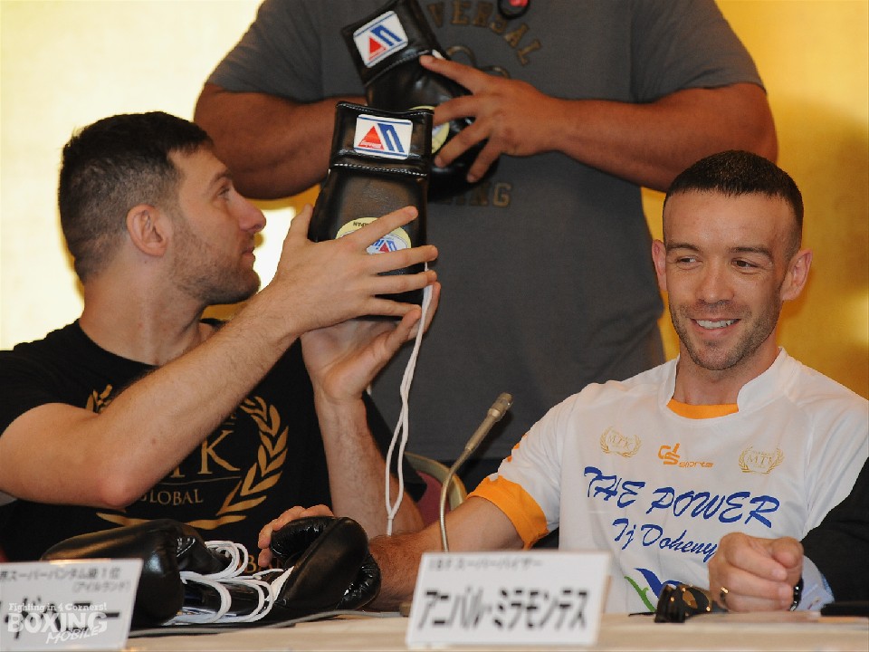 一方、フィアンセと1歳になる息子を含めチームで会場をジャックしたドヘニーは、初の世界戦ながらリラックスムード。質疑応答では「良いキャンプができたし、コンディションは素晴らしい状態にある。明日は勝利しかない」と意気込み、マネージャーのマイク・アルタムラ氏も「岩佐を挑発する気はないが、TJはどんな状況にも対応できる。明日は新しいチャンピオンが誕生する」と王座交代を断言した。