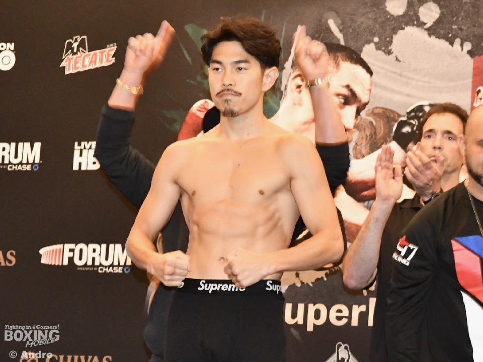 続いて、114.6ポンド、200gアンダーの51.9kgでパスした井岡は「アローヨに対しては特に印象はないです。ブランクは感じないが、明日は新しい井岡一翔の始まりですし、僕を知っている人にも、知らないアメリカの方々にもサプライズになるような試合をしたいと思います」と自信のコメント。最後に井岡は「KOはもちろん狙います。どのラウンドでも」と力強くKO宣言して宿泊施設に戻った。