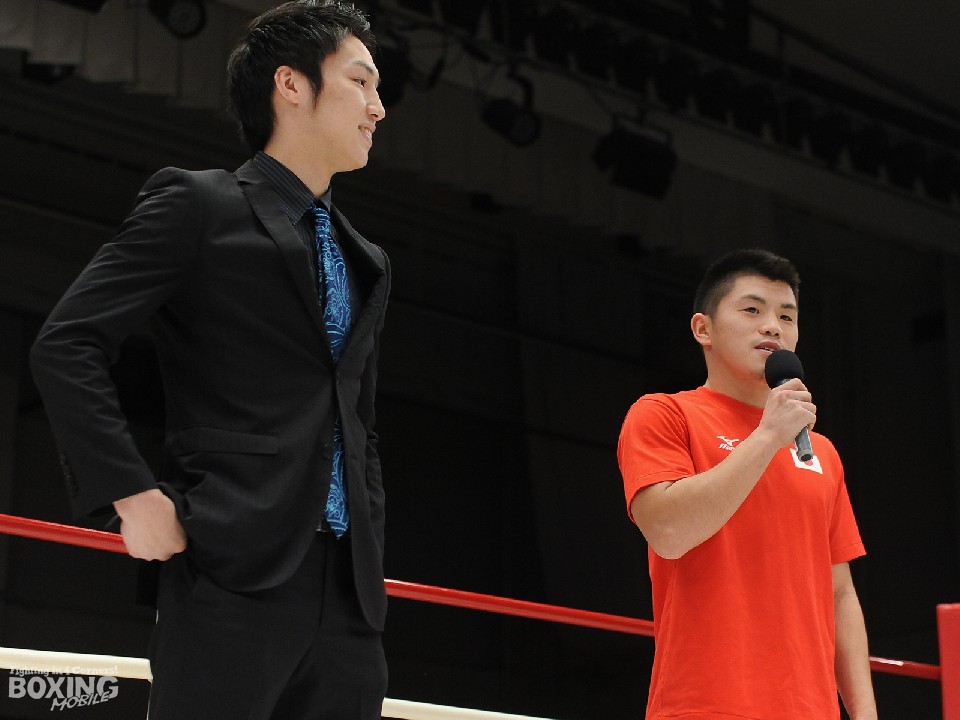 11日に後楽園ホールで行われた大橋ジム主催「第65回フェニックスバトル」のリングで次回、12月3日(月)に開催されるイベントが発表された。フェザー級10回戦で対戦することが決まった、日本Sバンタム級10位の丸田陽七太(森岡)と日本フェザー級12位の溜田剛士(大橋)がリングに上がり、溜田が「僕が倒して勝ちます!」とあおれば、丸田も「良い試合をして勝ちます!」とやり返し、会場を盛り上げた。