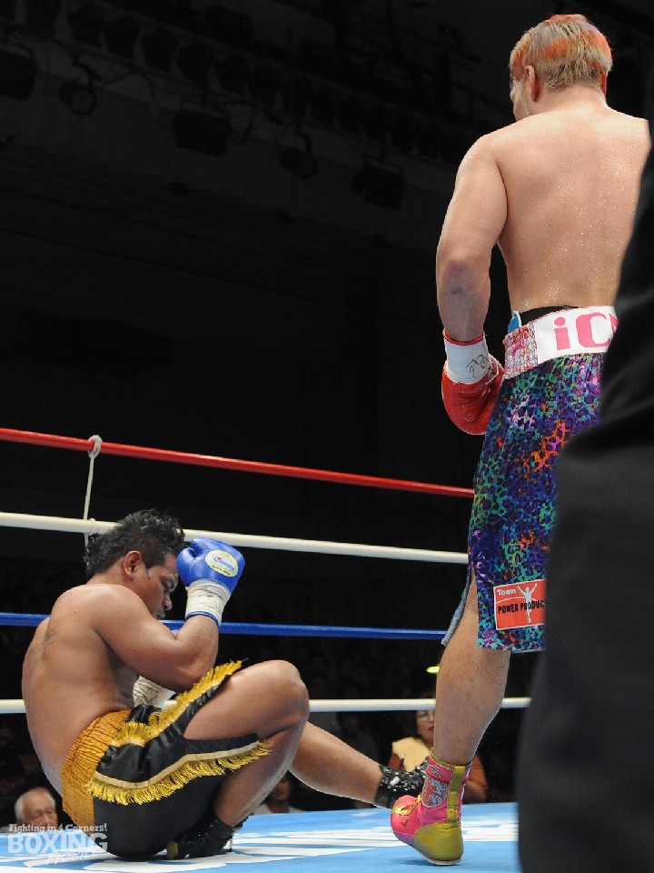 第3試合では、前OPBF東洋太平洋フライ級王者の中山佳祐(ワタナベ)がSフライ級6回戦でジャッカパーン・セントーン(タイ)を相手に再起戦。中山は初回に単発の左ボディストレートを当てると、2回に左ストレートを直撃させタイ人をキャンバスに沈めた。