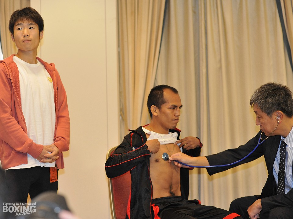 WBC(世界ボクシング評議会)Lフライ級王者の拳四朗(26=BMB)が4日、都内のホテルで通算5度目となる世界戦の予備検診に臨んだ。先に医師の診断を受けた拳四朗は、挑戦者でWBC同級5位ミラン・メリンド(30=比)の番になるとのぞき込むようにチェック。会見では「見た目は怖いが会ったら優しそうだった」と笑い、防衛戦4度目の余裕を見せた。