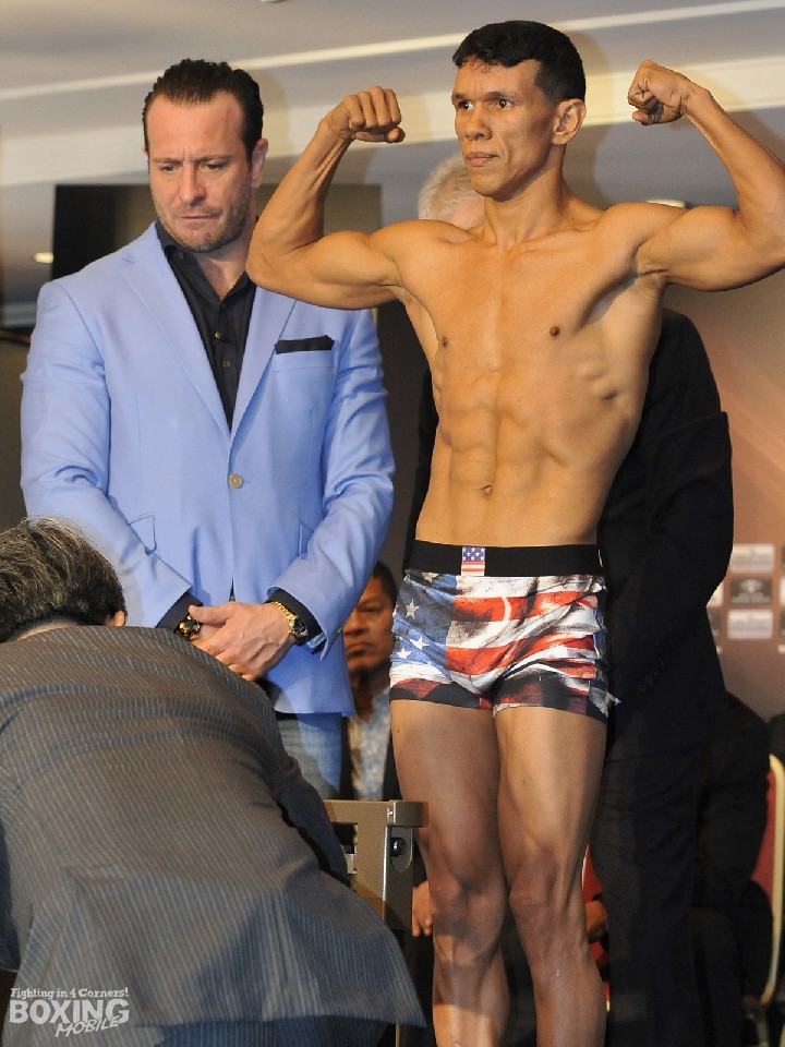 一方、挑戦者のパヤノは300gアンダーの53.2kgでパスした。王座奪還を狙う元WBO世界同級スーパー王者は、「敵地だがアウェーでの試合はこれが初めてではない。日本のファンのためにも最高の試合を見せる」とコメント。数々の激闘を勝ち抜いてきた貫禄を見せた。