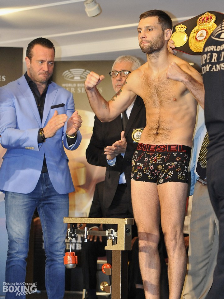 WBA(世界ボクシング協会)Sライト級タイトルマッチ、王者のキリル・レリク(ベラルーシ)対挑戦者のエドゥアルド・トロヤノフスキー(ロシア)の前日計量も行われた。レリクはリミットちょうどの63.5kg、トロヤノフスキーは400gアンダーの63.1kgで秤を降りた。これが初防衛戦となるレリクは、「日本に来ることができて大変うれしい。明日は完全決着をつける」と闘志を燃やすと、元IBF同級王者のトロヤノフスキーは、「WBSSに出場することができて光栄だ。明日はしっかりと勝つ」とやり返した。