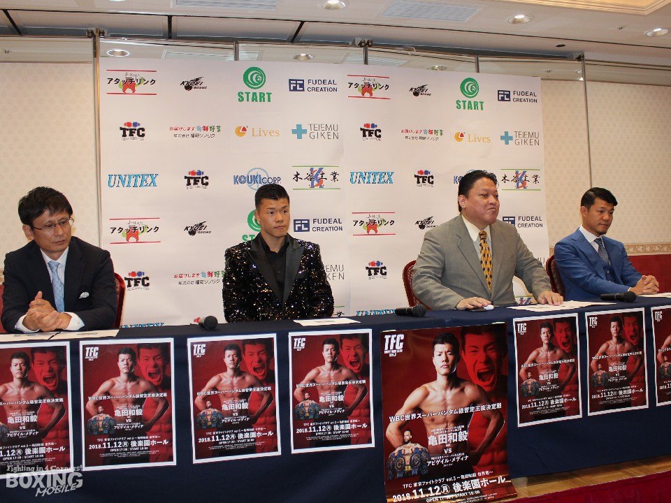 会見に同席した亀田興毅TFCイベントプロデューサーは、「世界戦にこぎつけるまで長かったが、無事に決まってホッとしている。和毅は実力があるので勝利を確信している。亀田家、ここにありという試合を見せてほしい」と期待を寄せた。