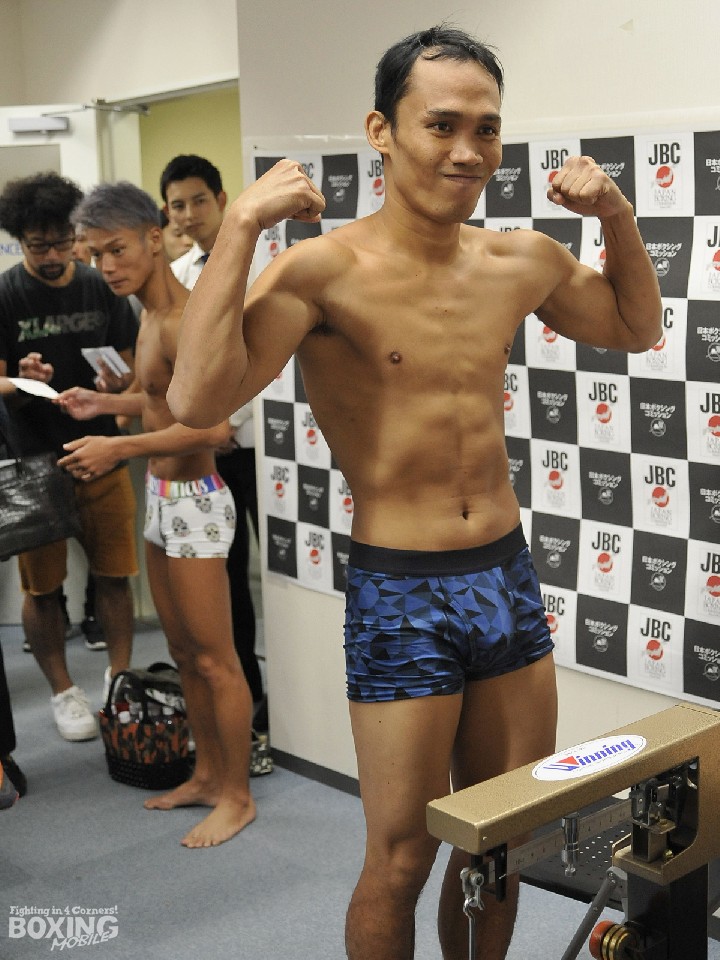 減量苦から解放された勅使河原は、フィリピン合宿で鍛え上げ一回り逞しくなった体を披露。「筋肉を落とすことなく仕上がった。明日は自分でも楽しみ。今まで出せなかった分のパワーを、ヤバい勅使河原を見せる」と声を弾ませた。また、「今回、長谷川さんからは体幹トレーニングや体の使い方を教えてもらった。しっかり結果を出して期待に応える」と話し、昨年のWBOアジア王座挑戦時から指導を仰ぐ元世界3階級制覇王者の長谷川穂積氏に感謝した。