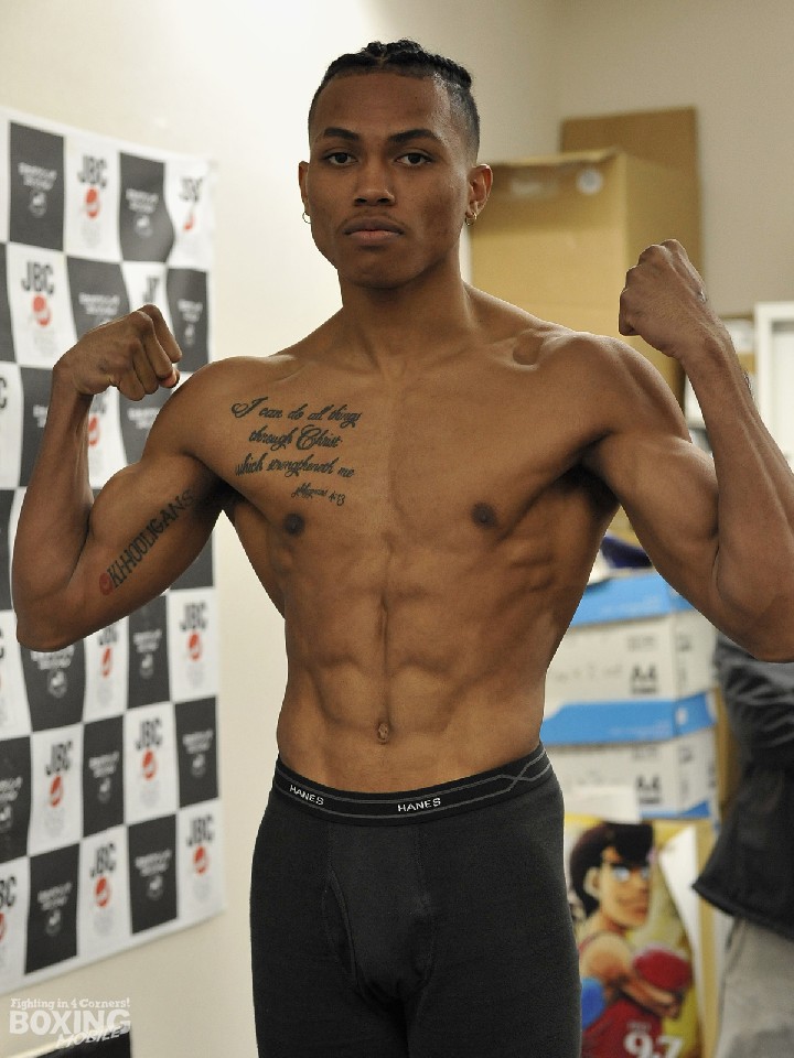 対し、ここまで9戦全勝(8KO)と90%近いKO率を誇る同級4位の小田は、200gアンダーの61.0kgで計量をパス。少し減量疲れの印象を抱かせたが、「初のタイトルが楽しみ。簡単な相手じゃないことは分かっているが、チャンスがあればすぐに終わらせるつもり。セコンドの指示をしっかり聞いて勝ちます」と、こちらもKO勝ちを想定した。